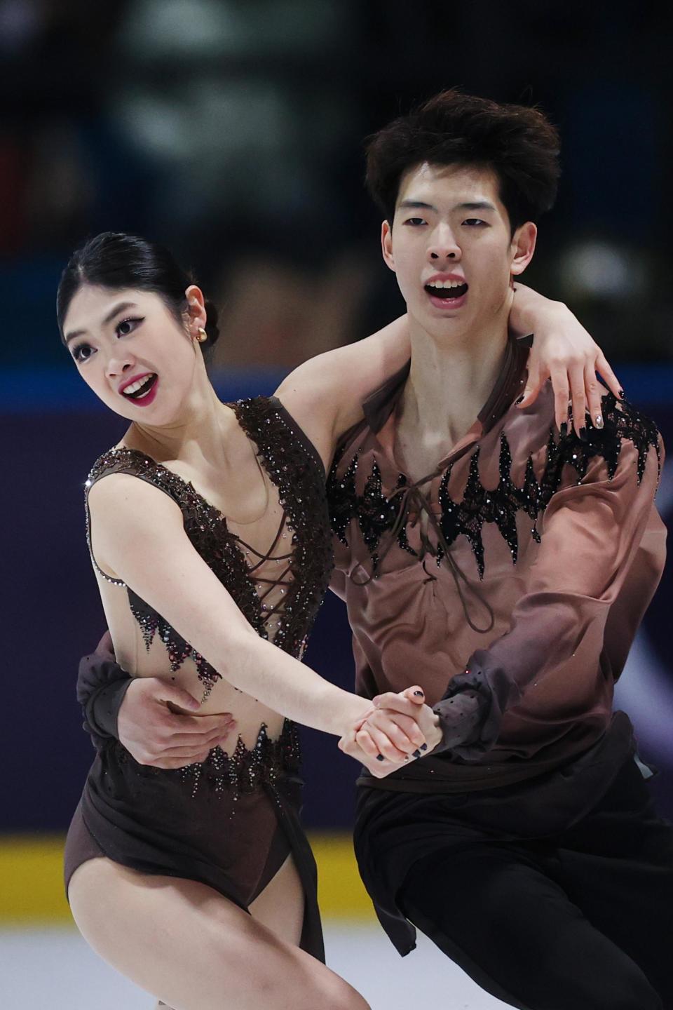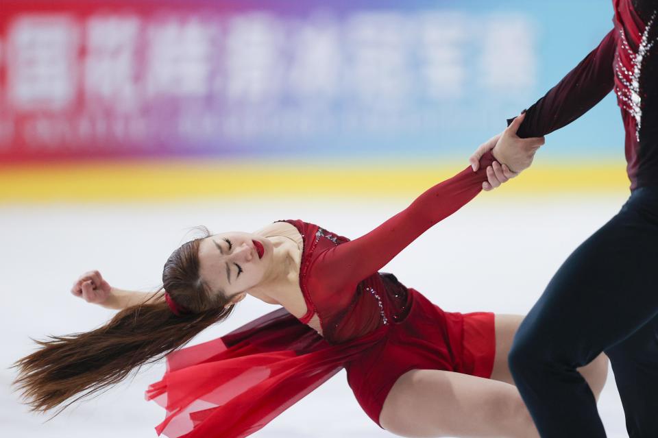 1月19日,吉林省体育局冰上运动管理中心组合林宇飞(左)/高子健在冰上舞蹈自由舞比赛中。最终他们获得冰上舞蹈季军。新华社记者 许雅楠 摄