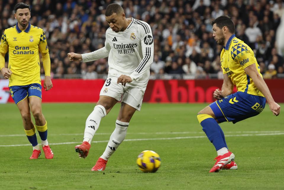 1月19日,皇家马德里队球员姆巴佩(中)在比赛中。新华社/欧新