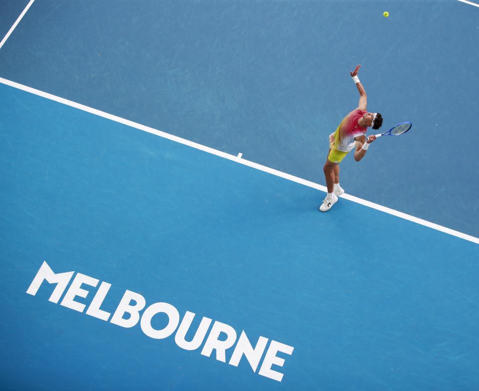 1月20日,孟菲尔斯在比赛中发球。新华社记者 马平 摄