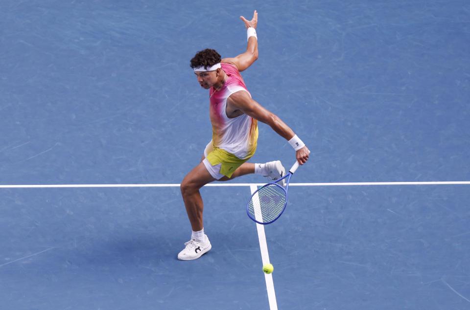 当日,在墨尔本进行的2025年澳大利亚网球公开赛男单第四轮比赛中,法国选手孟菲尔斯退赛,美国选手谢尔顿晋级八强。