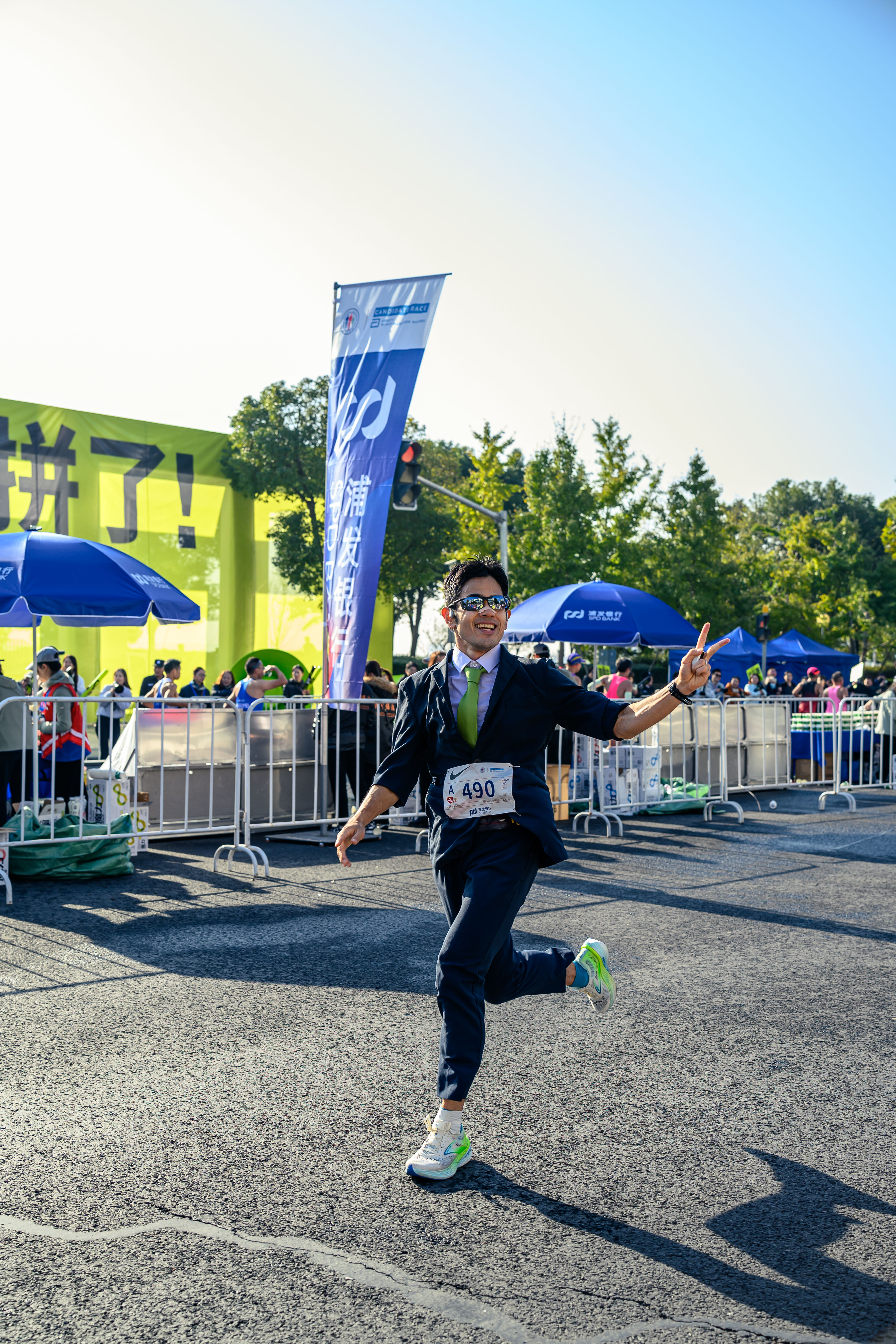 相比之下,来自日本东京的网红跑者“西装哥”濑户温夫对于上马已经非常熟悉。一路上,他不仅和相熟的跑者相互鼓励,平时他也经常邀请日本的朋友来中国感受马拉松的魅力。在上海工作生活了很长时间的濑户温夫,如今是民间“西装跑马协会”的会长,这次他不仅成了上马赛道的一道风景,也刷新了自己的PB,将个人最好成绩一口气提升了40秒。