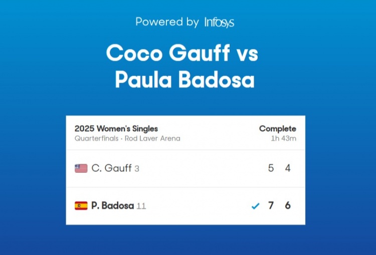 1月21日,澳网女单1/4决赛,经过两盘较量,11号种子巴多萨以7-5 6-4击败3号种子高芙,终结了后者的跨赛季11连胜,职业生涯首次在大满贯击败世界前十、首次闯入大满贯四强。
