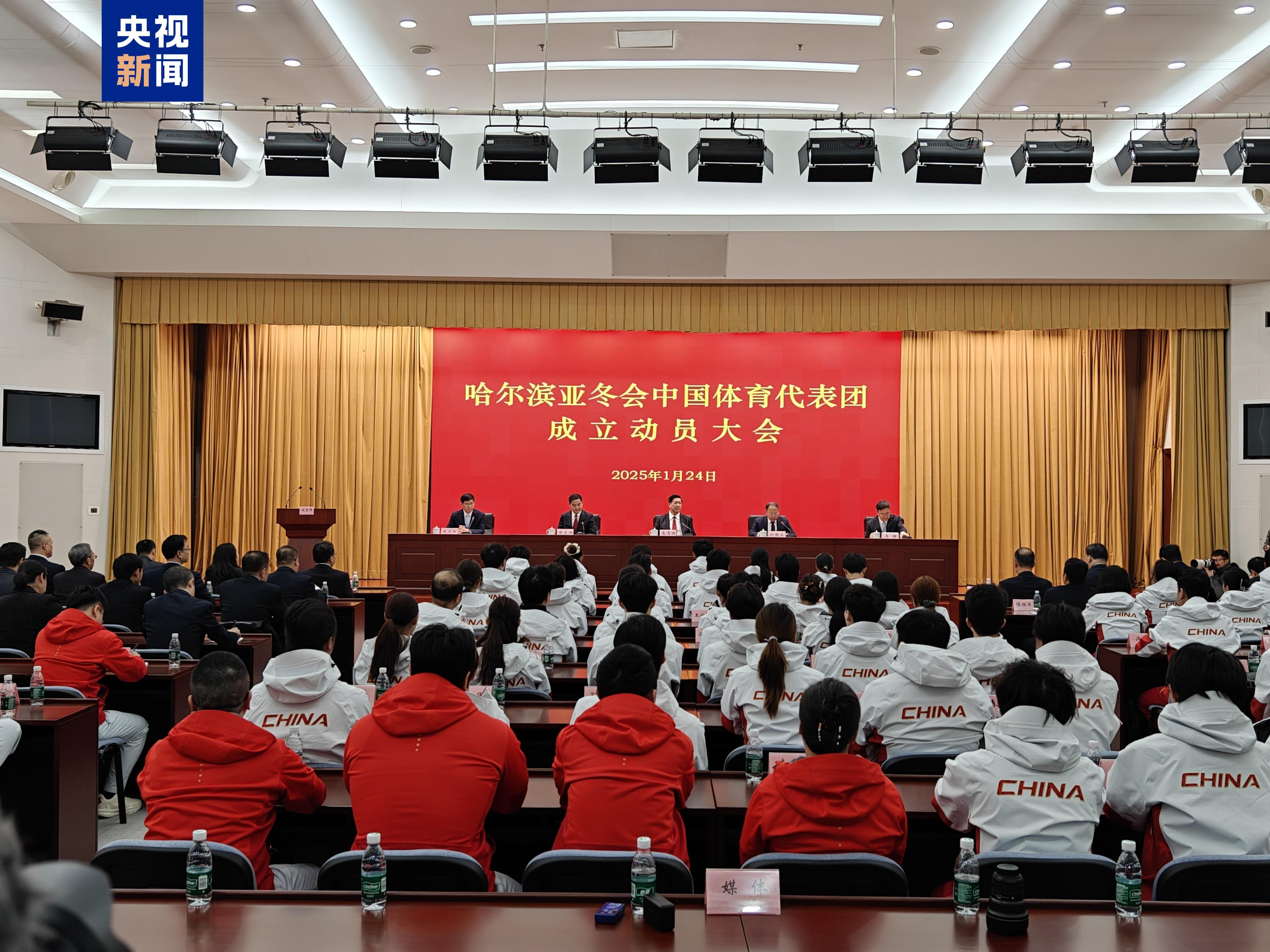 北京时间1月24日,哈尔滨亚冬会中国体育代表团成立动员大会在体育总局召开,中国体育代表团正式成立。