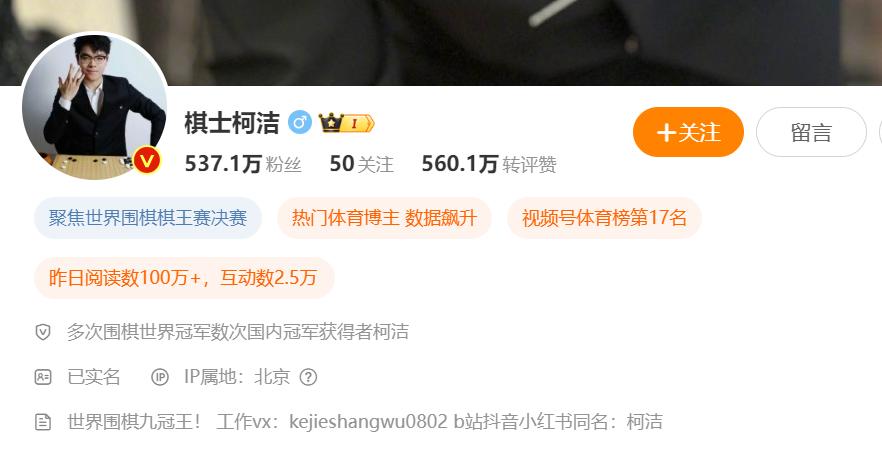 退赛后,柯洁火速离开赛场。此后,他将个人微博简介修改为“世界围棋九冠王!”。