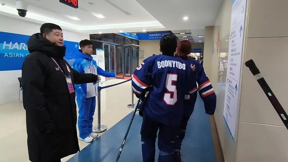 志愿者引导运动员回休息室(央广网发哈尔滨2025年第9届亚冬会供图)