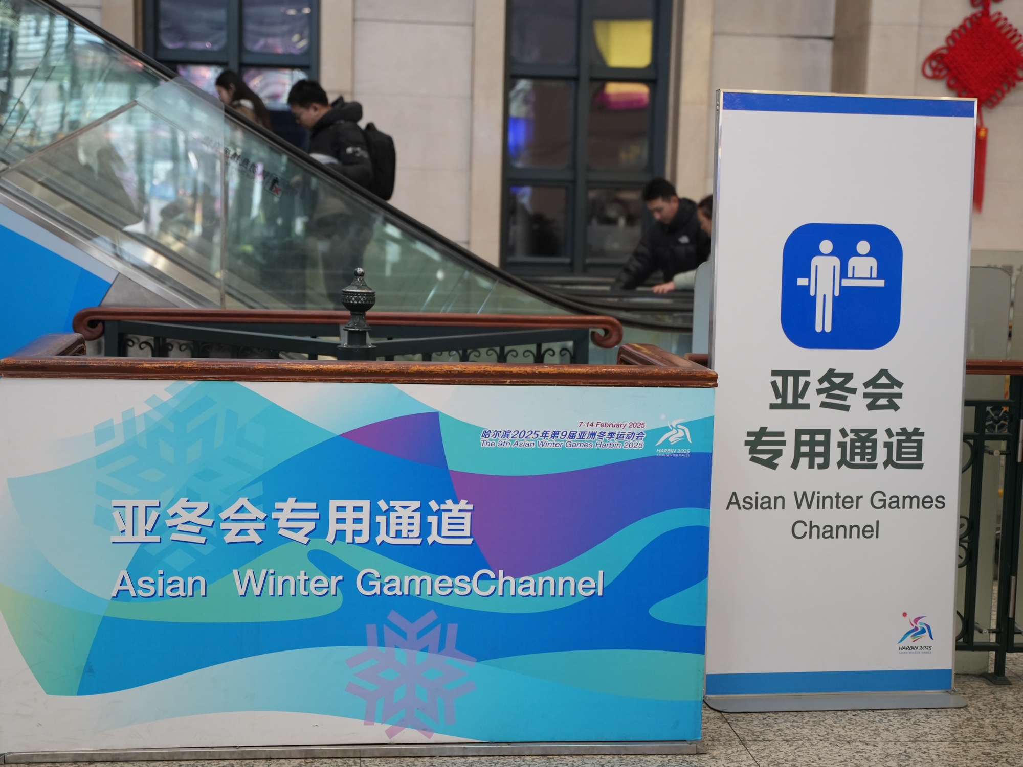 哈尔滨火车站站内的亚冬会专用通道(央广网实习记者赵恩琪摄)