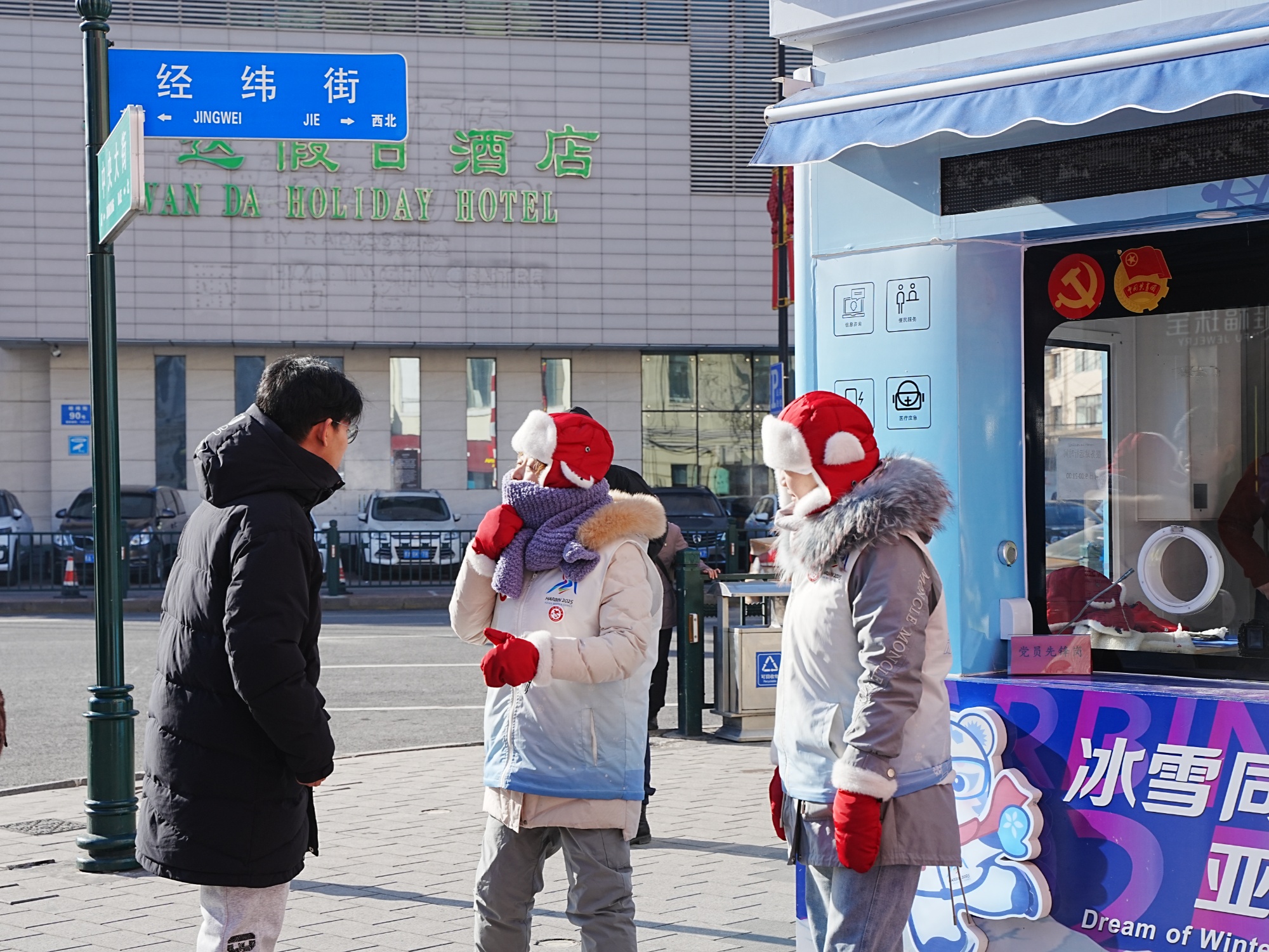 同时,亚冬会期间,有超过2万名城市侧志愿者覆盖亚冬会赛事场馆周边、旅游景区、交通枢纽、服务行业等重点区域,为赛场外的城市运行提供服务保障。他们有的为行人指引路线,有的为游客作讲解,精通外语的志愿者为外国游客答疑解惑。