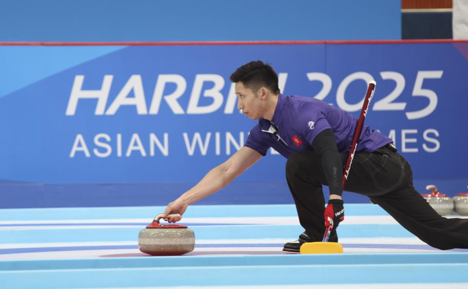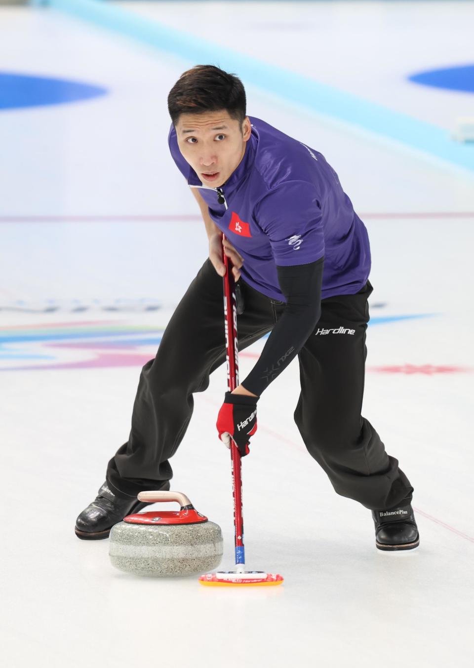 2月7日,中国香港队选手甄浩天在比赛中掷壶。新华社记者 吕帅 摄