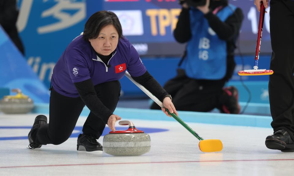 2月7日,中国香港队选手孔令瑜在比赛中掷壶。新华社记者 吕帅 摄
