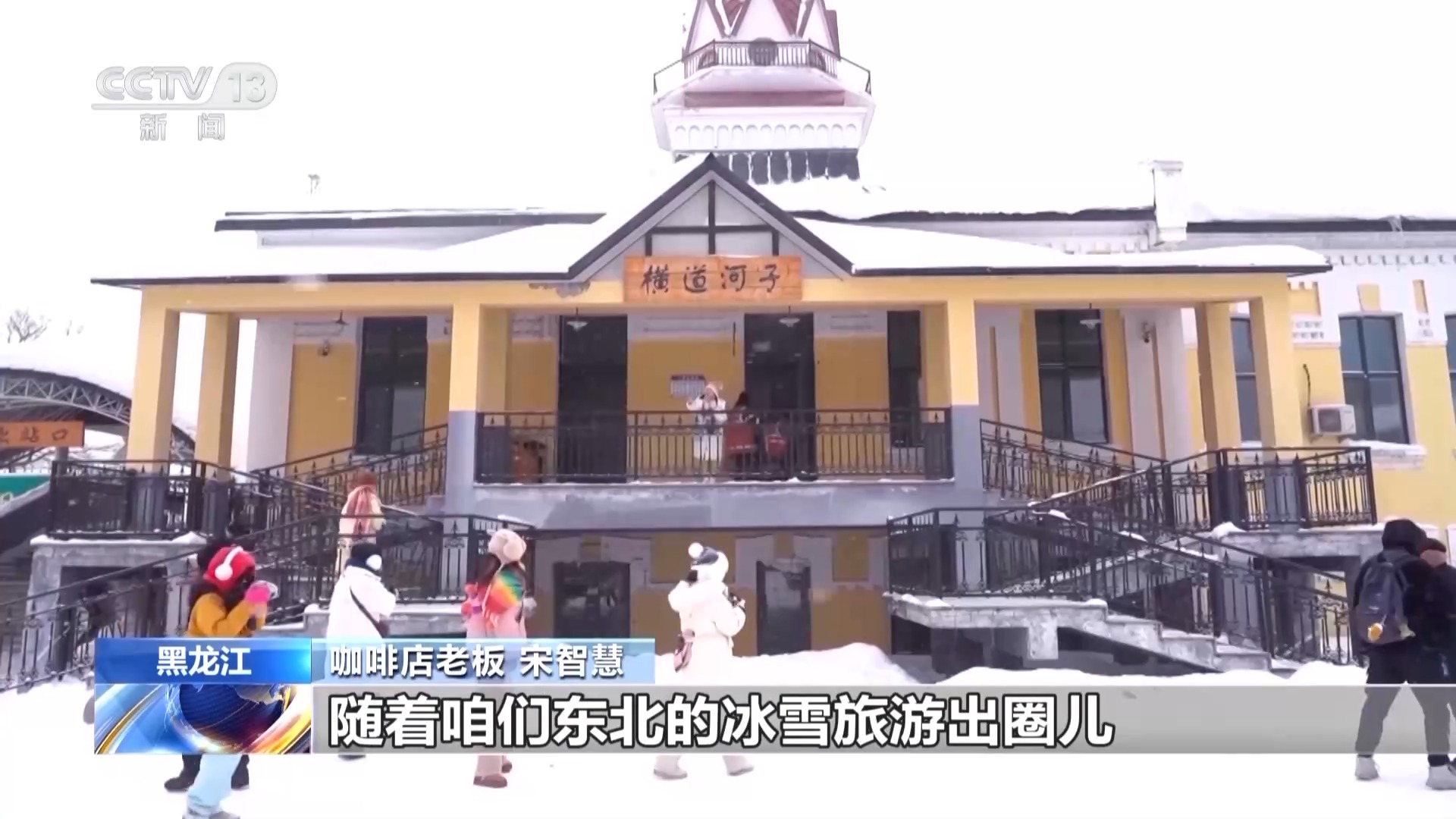 咖啡店老板 宋智慧:横道河子现在这么火,刚好赶上了亚冬会的时间,给我们带来很大的人流量,随着咱们东北的冰雪旅游出圈,让我们真真切切地感受到什么叫做冰天雪地就是金山银山。