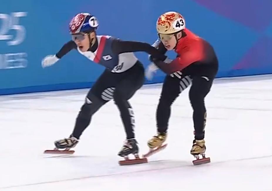 决赛中,中韩两队的争夺尤其激烈。比赛还剩下5圈时,刘少林在交接棒阶段超越到首位。此后,中韩两队队员开始激烈“交锋”。最后一圈,中国队选手林孝埈在超越时遭到韩国队干扰,摔出赛道。韩国队被判犯规,取消了比赛成绩。