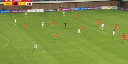 第55分钟,贾姆希德边路突破送出传中,法拉加拉门前推射扳回一球,卡塔尔将比分追至1-2。