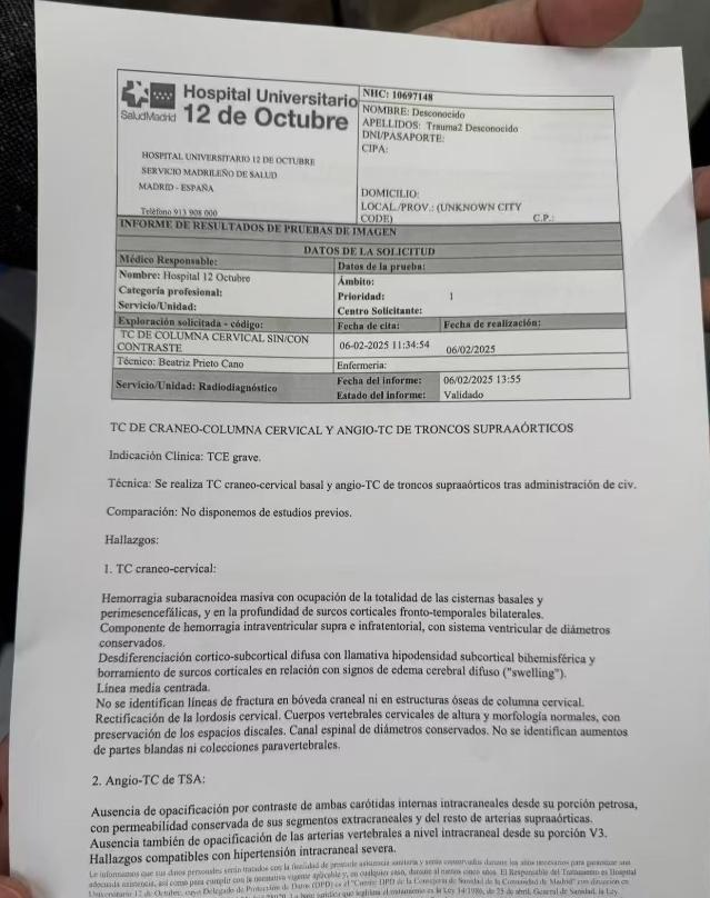 “我们全家得到消息后仿佛天已经塌了,母亲哭到几度昏迷,从对方翻译口中得知该医院的医生说我弟颅内出血过多,生还的希望十分渺茫。”郭嘉璇哥哥称,他爸爸当即联系到了北京市足协和北京国安足球俱乐部的领导,紧急办理签证前往马德里。郭父于北京时间2月8日凌晨1点从首都机场出发前往西班牙,在北京时间当日下午两点抵达西班牙。