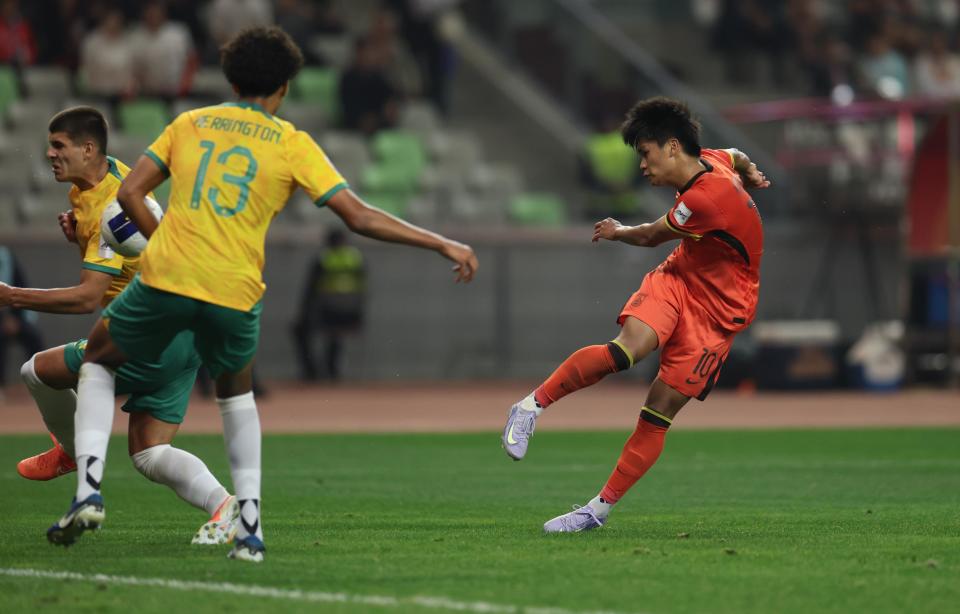 当日,在广东深圳举行的2025亚足联U20亚洲杯小组赛A组比赛中,中国队对阵澳大利亚队。