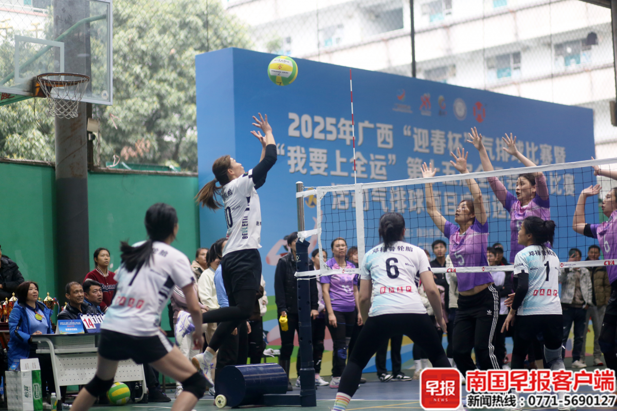 2月16日,2025年广西“迎春杯”气排球比赛暨“我要上全运”第十五届全运会群众比赛活动气排球项目广西选拔赛在南宁收官。55支代表队的487名气排球爱好者齐聚一堂,在为期2天的比赛中以球会友,上演了一场场精彩对决。