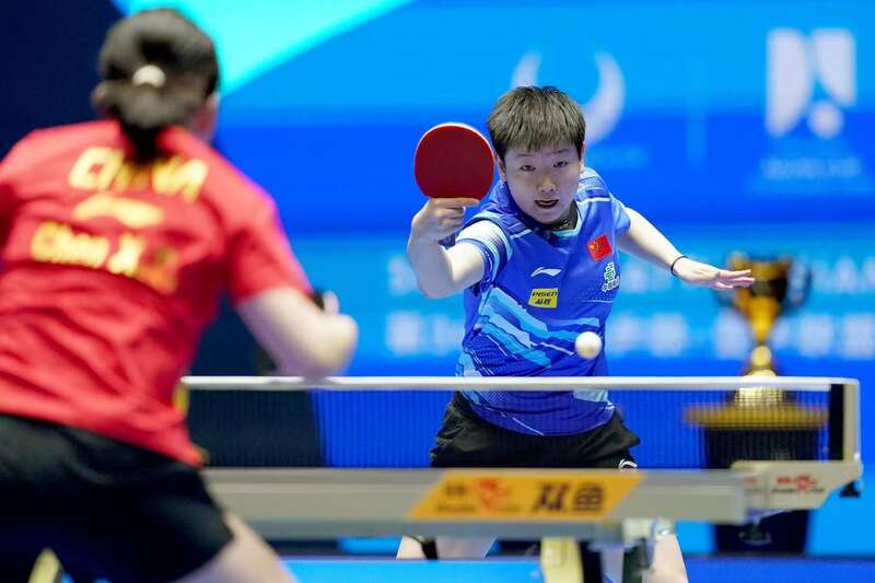 在男单另外一场半决赛上,中国选手梁靖崑苦战7局,以4:3战胜了队友林诗栋。在两场女单半决赛上,孙颖莎以4:0战胜队友陈幸同,王曼昱以4:1战胜队友蒯曼。