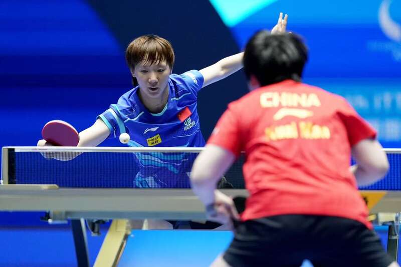 2月23日中午,2025亚洲杯乒乓球女单半决赛,中国选手孙颖莎与队友陈幸同在比赛中。WTT世界乒联供图