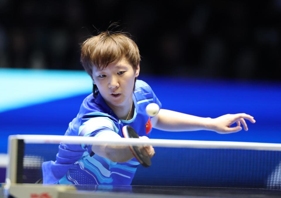 2月23日,王曼昱在比赛中回球。新华社记者 卢汉欣 摄