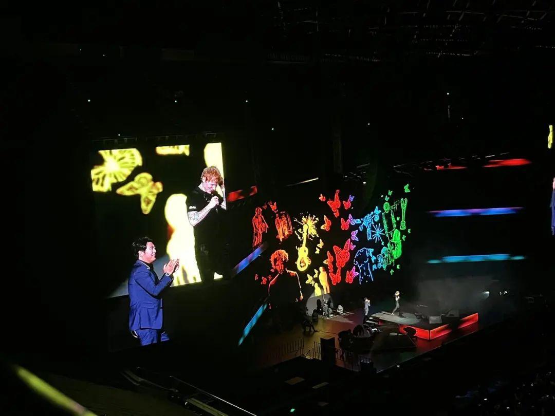 在2月24日晚的演出中,钢琴家郎朗作为嘉宾亮相,当副舞台载着施坦威三角钢琴突然出现,郎朗指尖流淌的旋律与Ed的吉他即兴交织,将《Perfect》演绎出了别具一格的韵味。