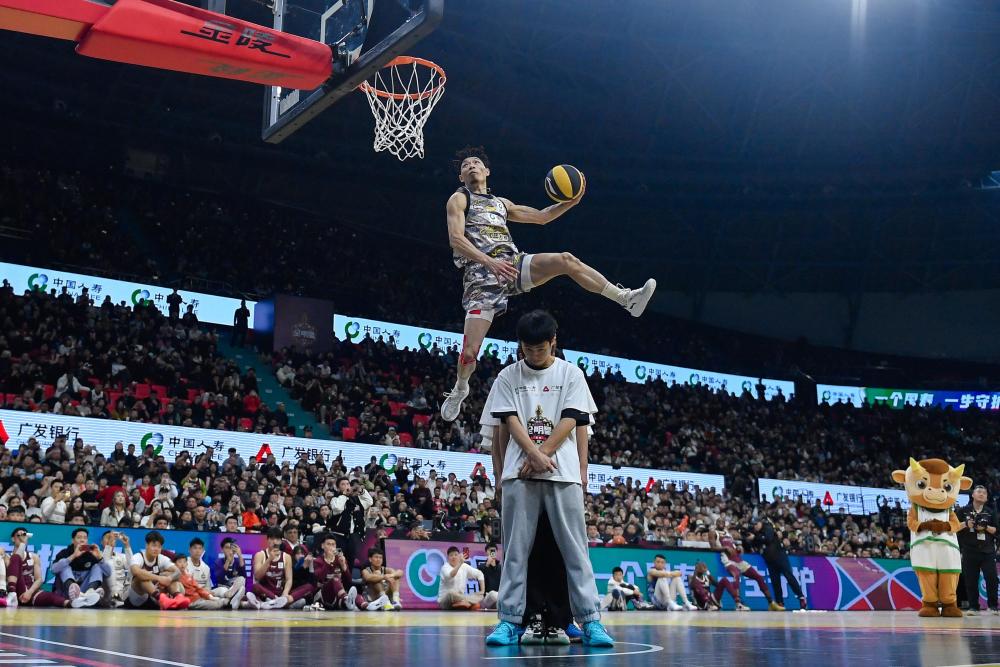 3月2日,陈登星在扣篮大赛中。新华社记者 许畅 摄