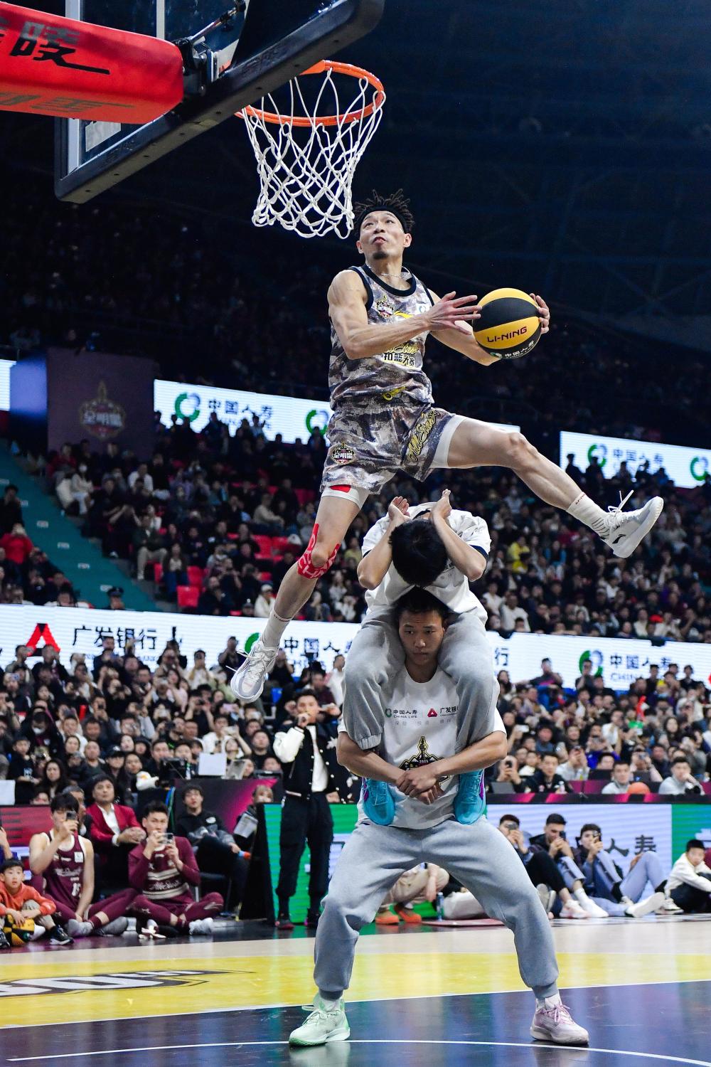 3月2日,陈登星(上)在扣篮大赛中。新华社记者 许畅 摄