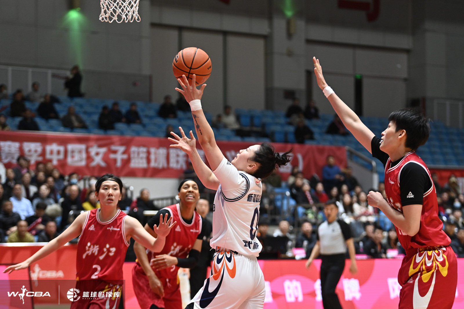在与浙江稠州银行女篮比赛中,新疆女篮核心后卫武桐桐上篮得手。图片来自联赛官方图库