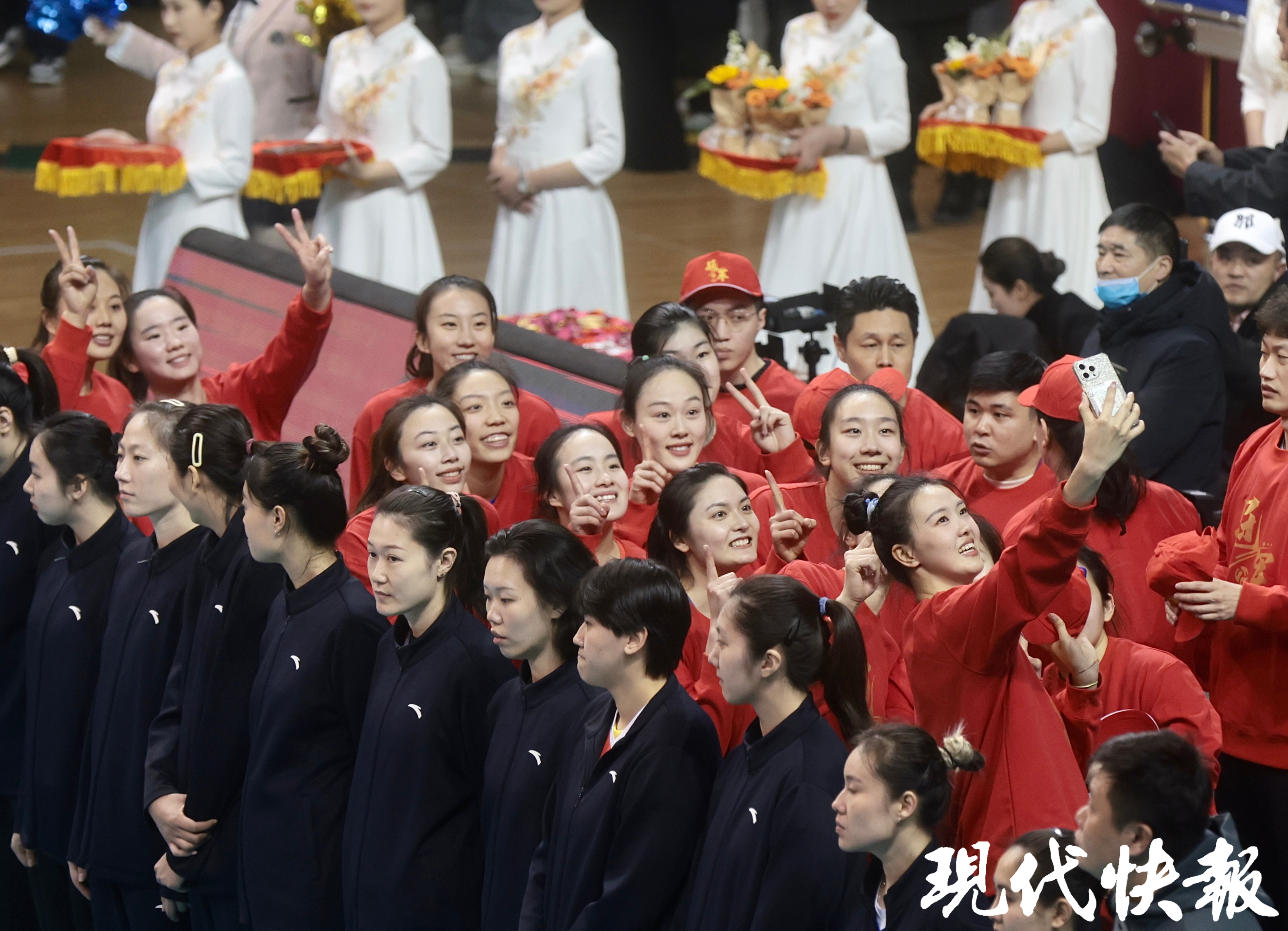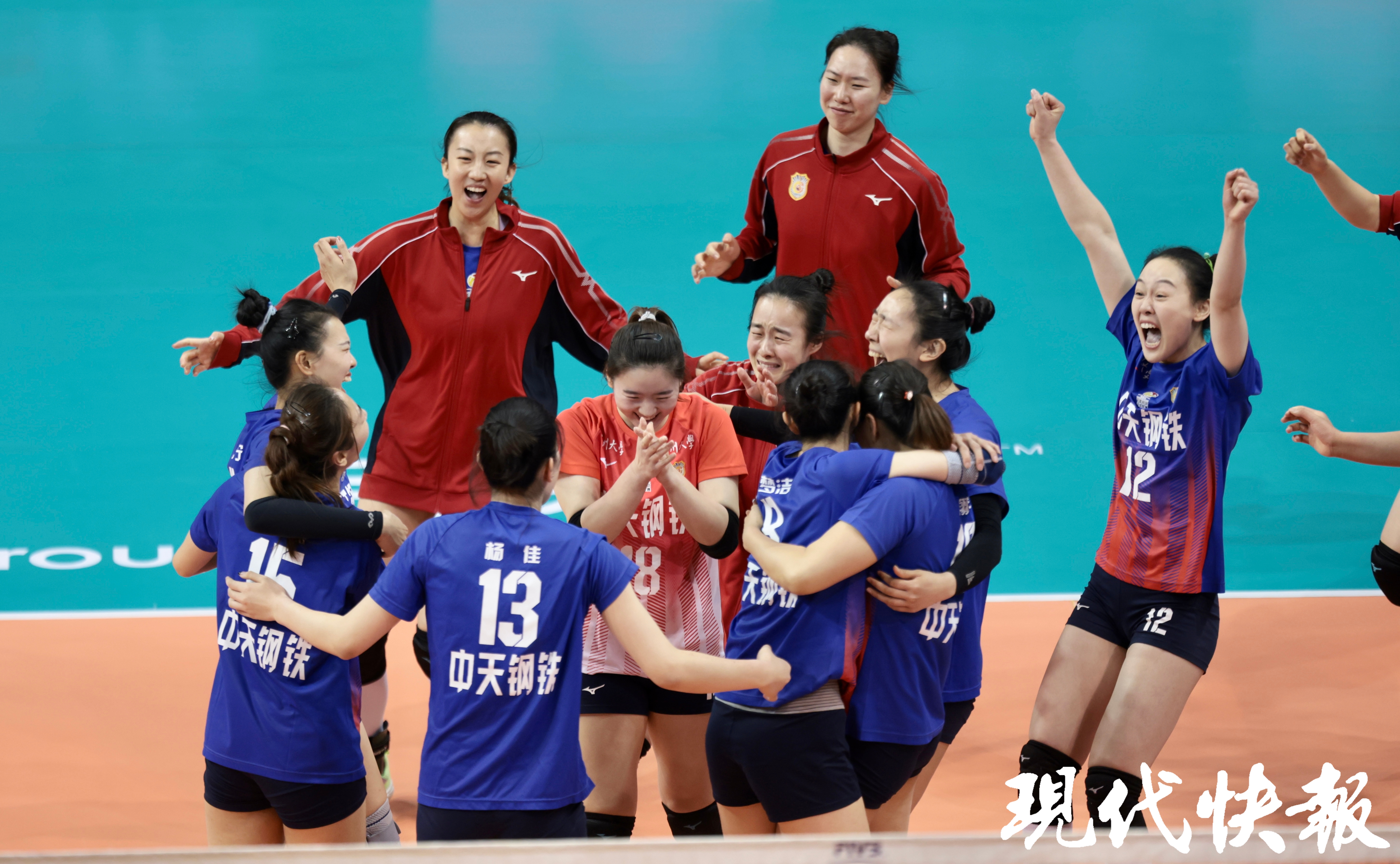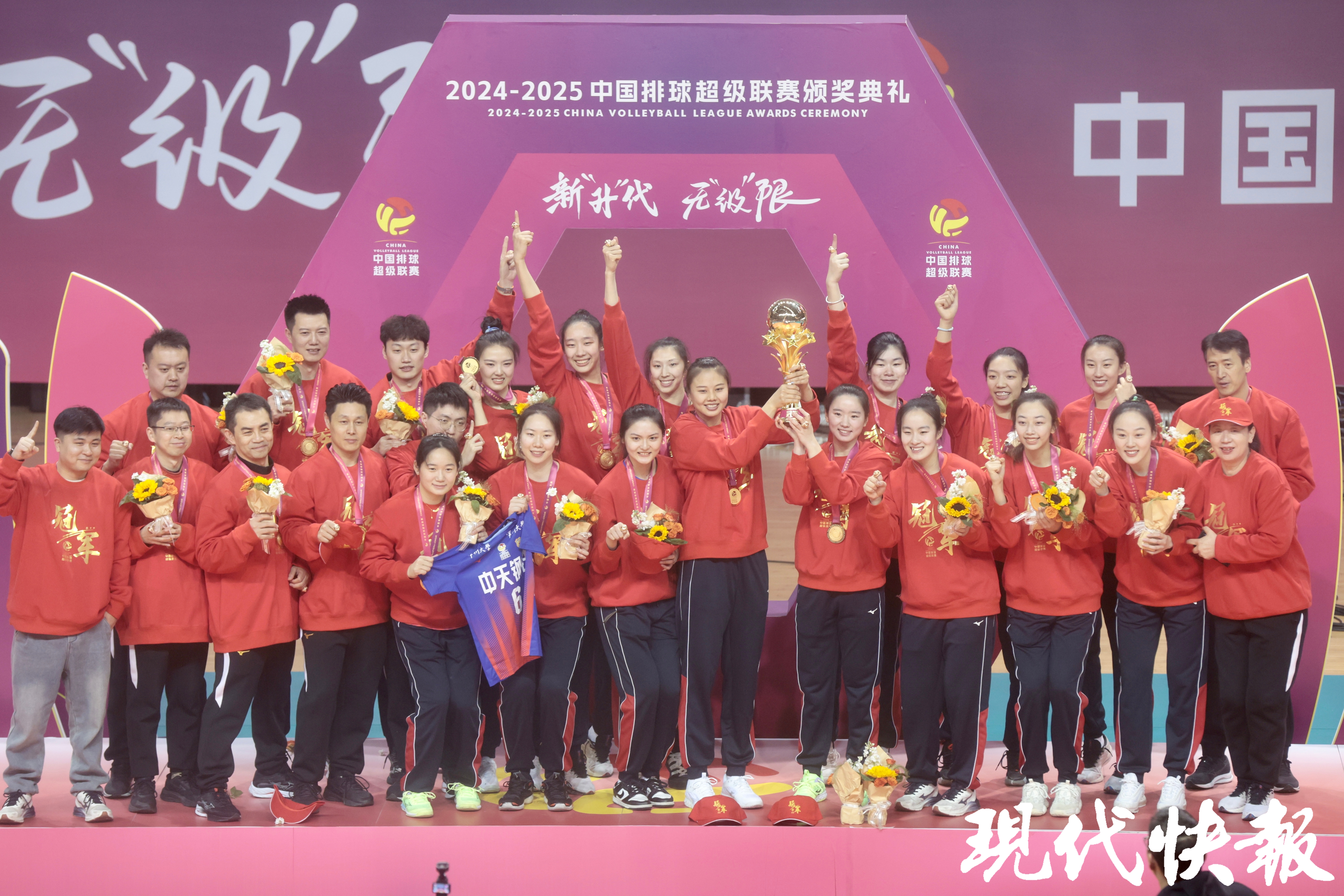 现代快报讯(记者王卫/文顾炜/摄)3月4日晚,2024-2025赛季中国女子排球超级联赛冠亚军总决赛第二场对决在常州举行,江苏中天钢铁女排坐镇主场以3-1的比分战胜上海女排。加上首战3-0横扫对手,江苏女排在三场两胜制的系列赛中以大比分2-0获胜,拿下本赛季女子排超联赛冠军,这是江苏女排队史第二座联赛冠军奖杯。