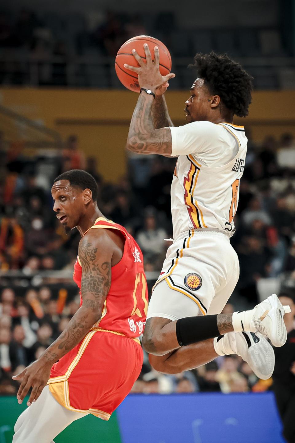 3月5日,山西汾酒队球员古德温(右)在比赛中。新华社记者 江汉 摄