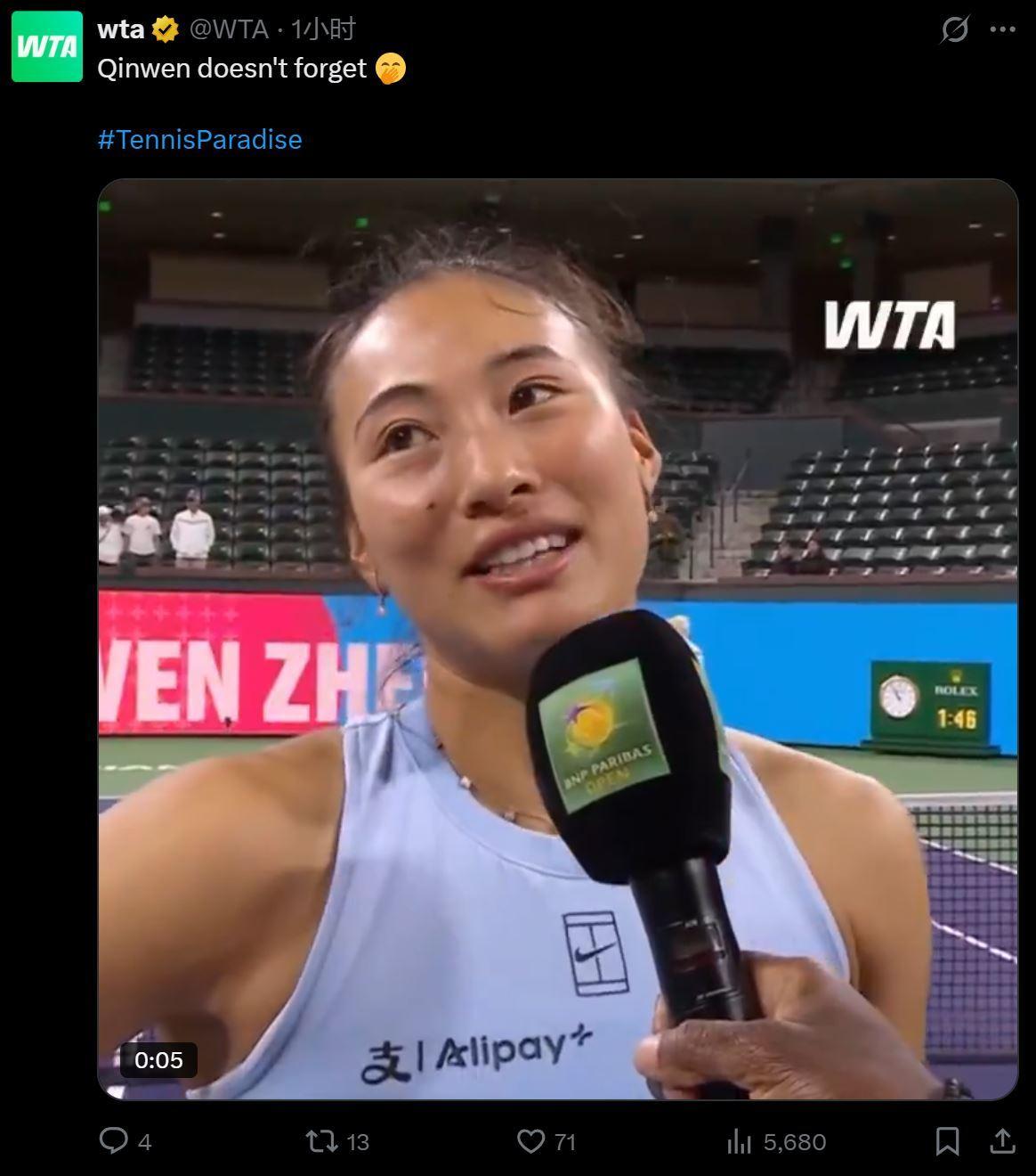 赛后,郑钦文表示,获胜的关键是保持稳定性。