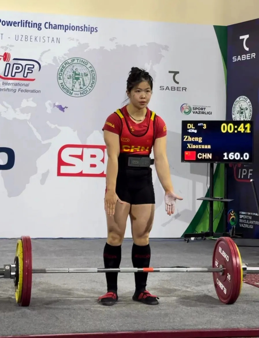 她正用体重三倍的杠铃