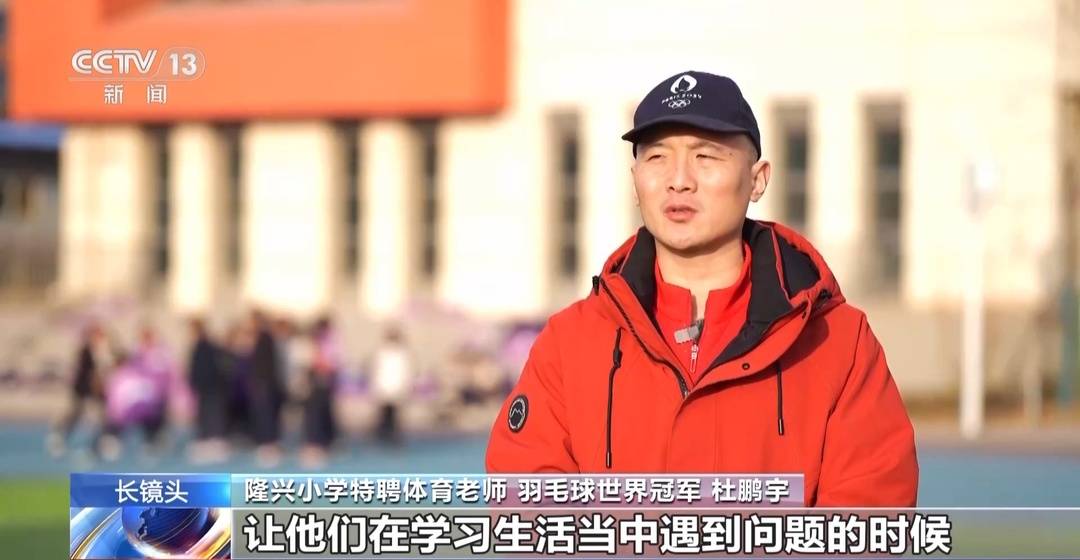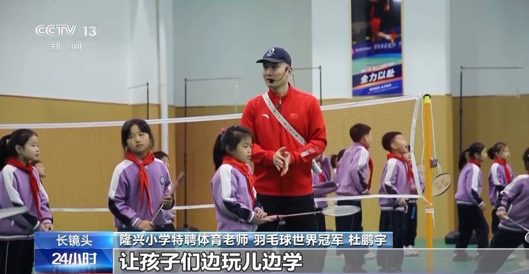 隆兴小学特聘体育老师 羽毛球世界冠军 杜鹏宇:兴趣是最好的老师,让孩子们边玩儿边学,让他们对体育产生浓烈的兴趣。