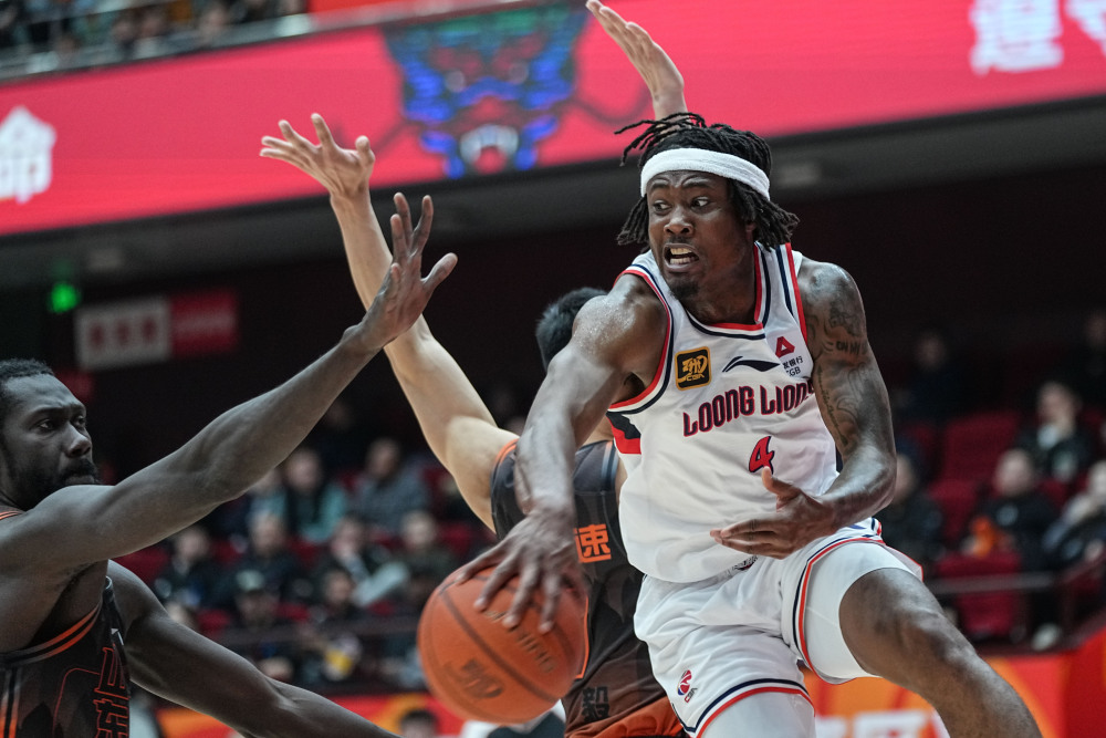 3月19日,广州朗肽海本队球员克劳福德(左)在比赛中进攻。新华社记者 朱峥 摄