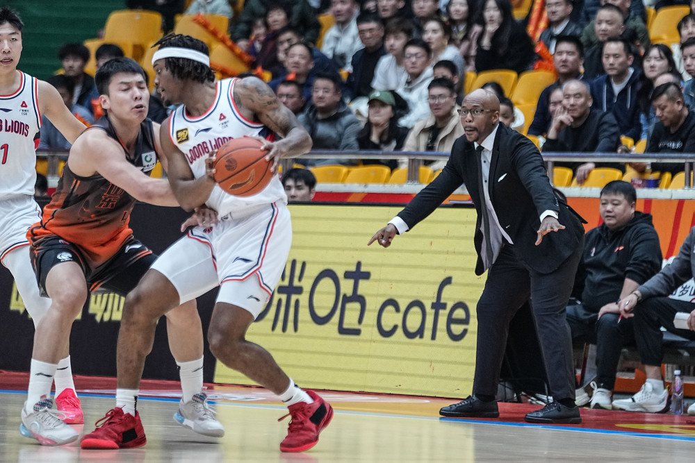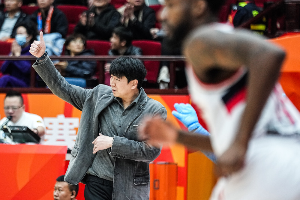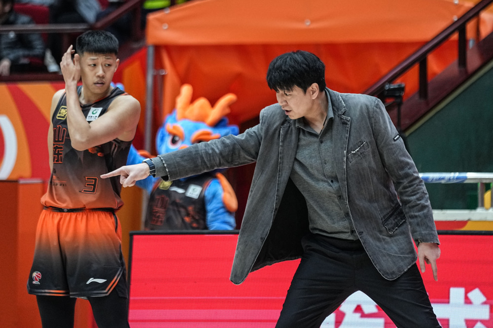 3月19日,山东高速队主教练邱彪在比赛中指挥。新华社记者 朱峥 摄