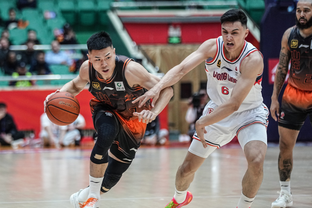 3月19日,山东高速队球员刘毅(左)在比赛中突破。新华社记者 朱峥 摄