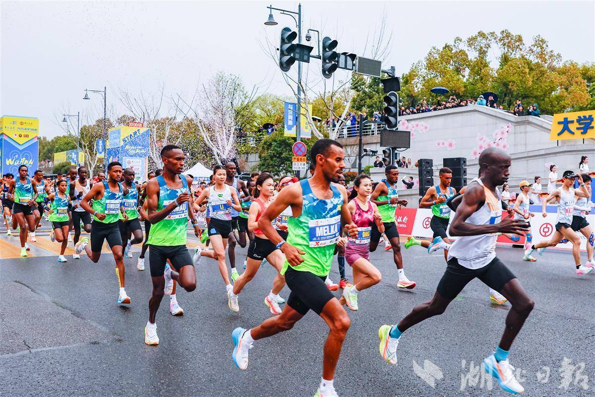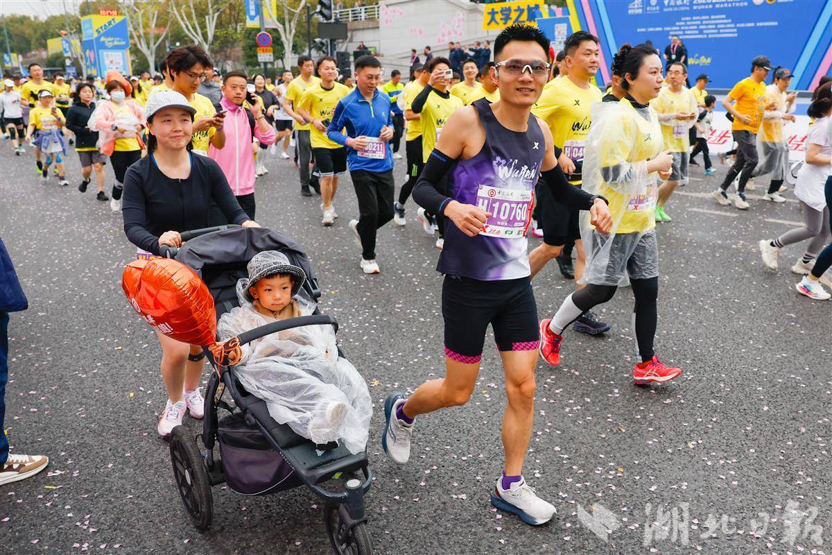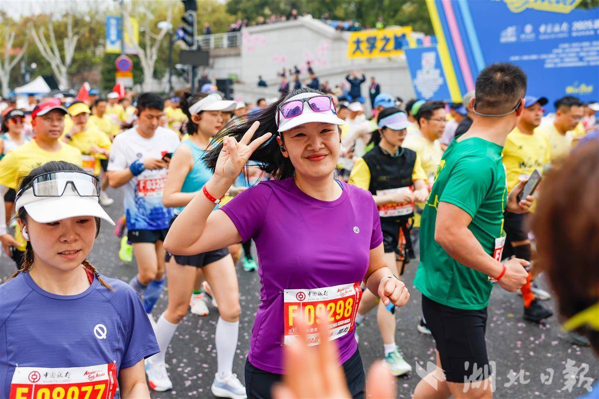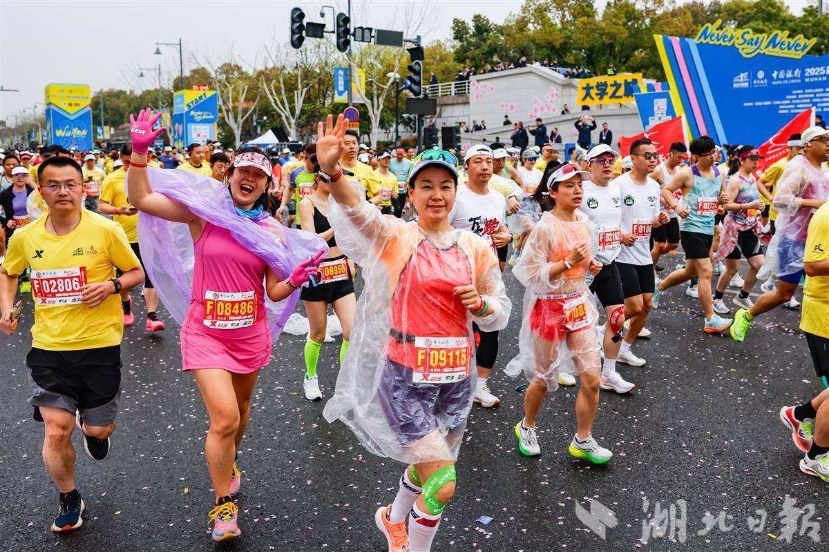 3月23日7时30分,2025武汉马拉松鸣枪开跑,4万名汉马健儿从汉口江滩三阳路出发,共赴江城春日盛宴。(湖北日报全媒记者倪娜摄)