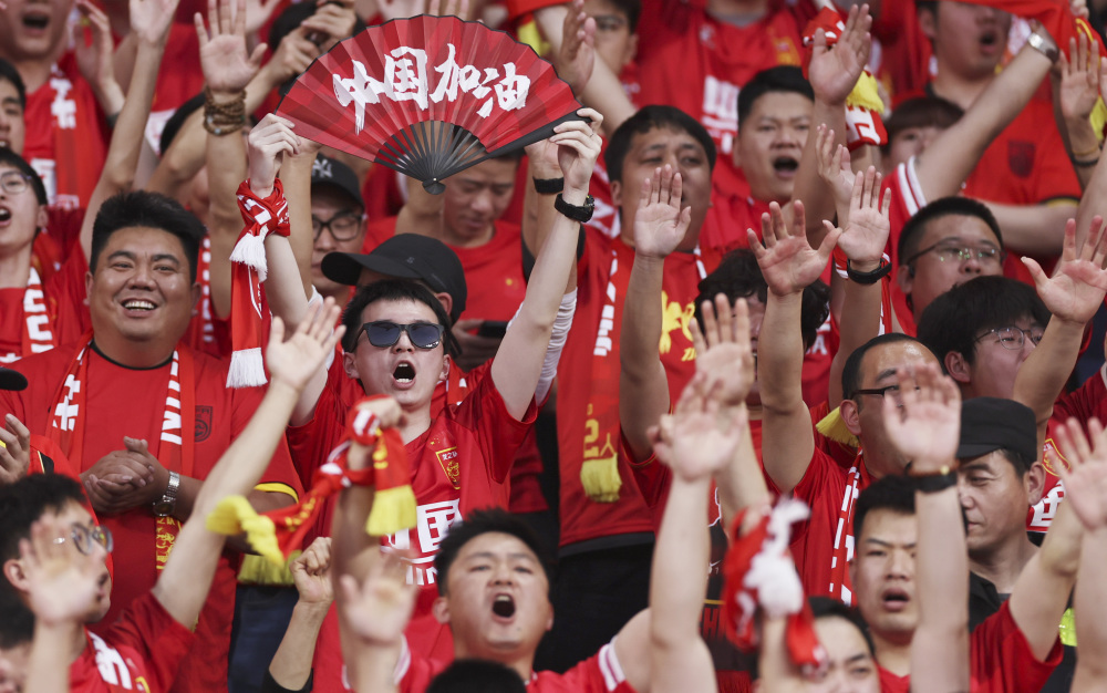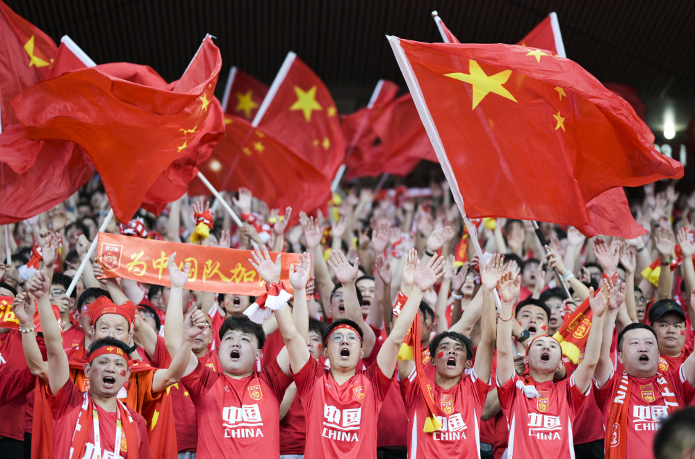 3月25日,中国队球迷在赛前为球队加油助威。新华社记者 张晨 摄