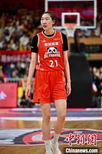3月25日,四川成都,四川女篮球员韩旭在比赛中。当日,2024-2025赛季中国女子篮球联赛(WCBA)常规赛最有价值球员(MVP)出炉,四川队中锋韩旭蝉联该奖项。 中新社记者张浪摄