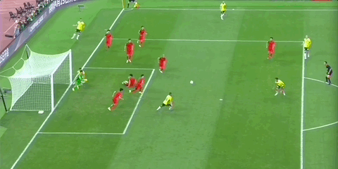 由于双方差距巨大,国足在上半场就先丢两球。第15分钟,澳大利亚球员欧文连续摆脱后抽射破门。第28分钟,国足门将王大雷出现致命失误,“黄油手”导致足球从两腿之间穿过,国足半场0-2落后。