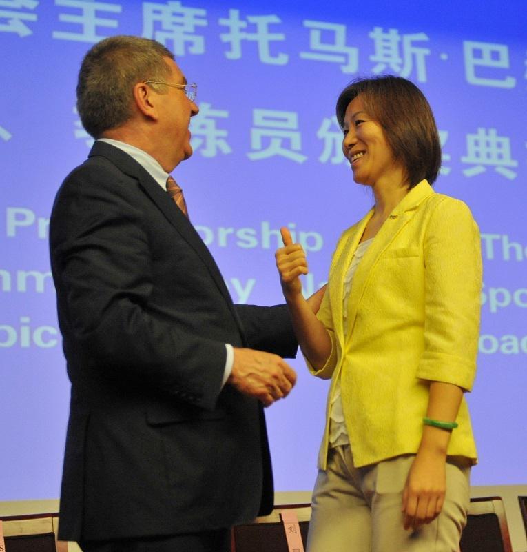 (2014年8月19日,南京青奥会第三日,巴赫造访南京体院,现场对话多位奥运冠军。)