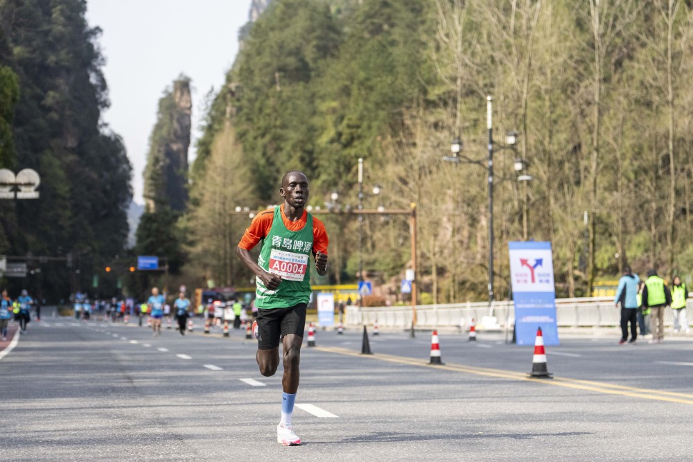 3月30日,肯尼亚选手尼奥凯耶·萨米·迪斯马斯在比赛中。最终,他以2小时27分27秒的成绩获得男子马拉松冠军。新华社记者 陈思汗 摄