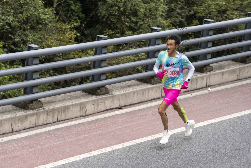 3月30日,中国选手谭奇在比赛中。最终,他以2小时30分40秒的成绩获得男子马拉松亚军。新华社记者 陈思汗 摄