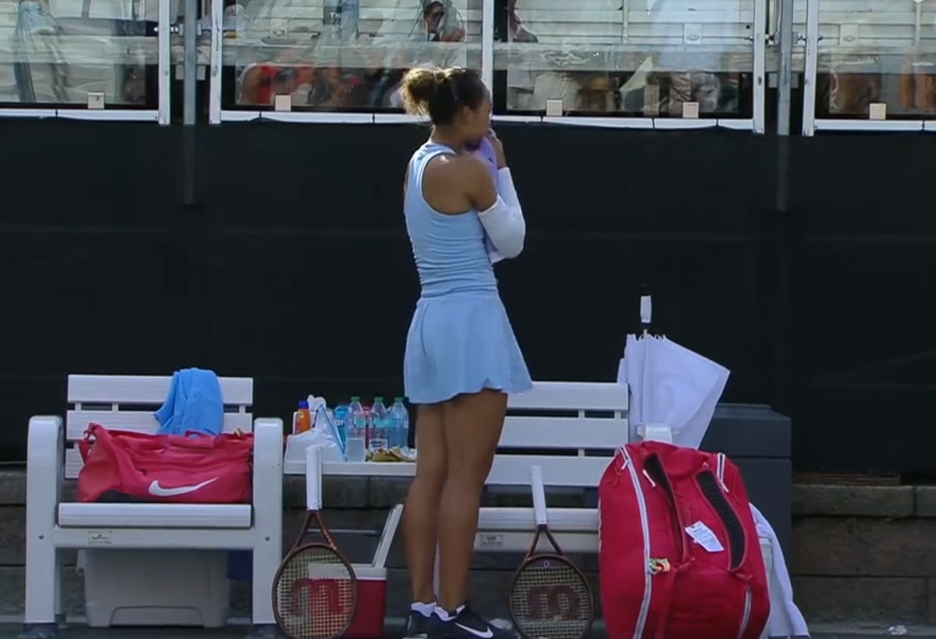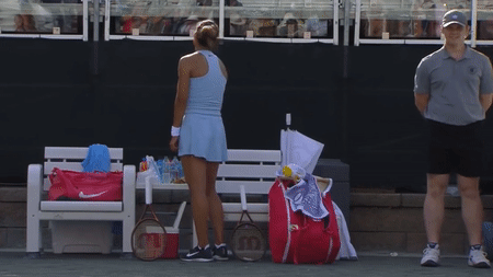 局间休息时,场边出现一幕小插曲:郑钦文来到场边吃香蕉补充能量。吃着吃着,她或许是不满意自己的比赛状态,狠狠地将手里的香蕉头砸在地面上。在砸了香蕉头后,郑钦文随即冷静下来,喝了点水,用毛巾擦了擦汗,然后重返赛场,继续比赛。