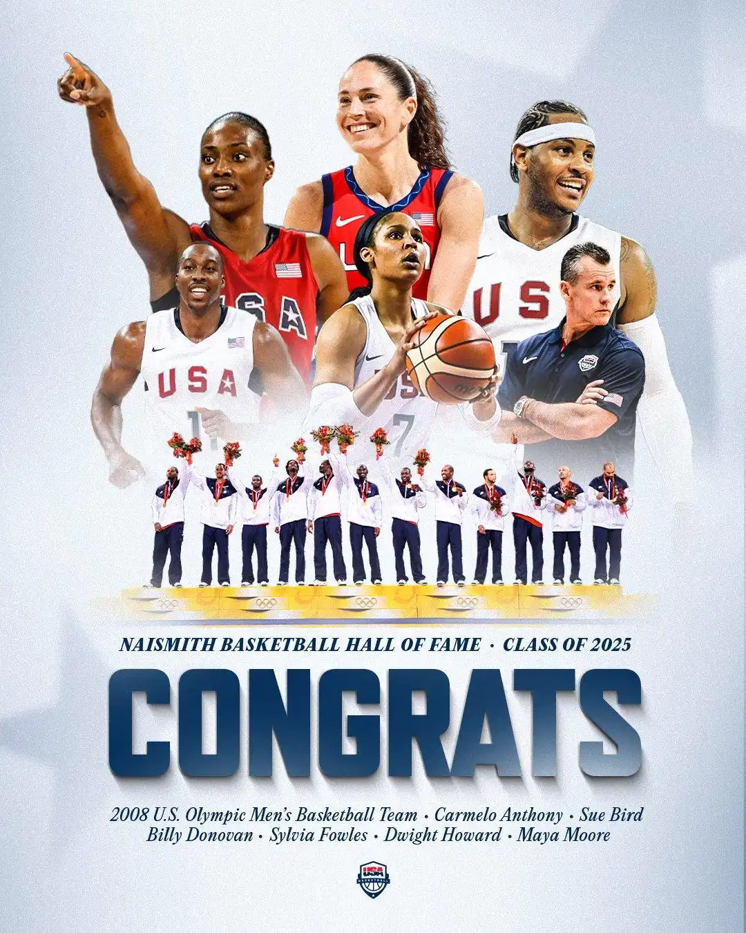 2025年篮球名人堂最终名单公布 2008年美国男篮入选