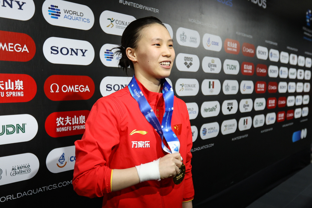 4月5日,中国选手全红婵在比赛后。新华社发(迪亚娜·马克斯摄)