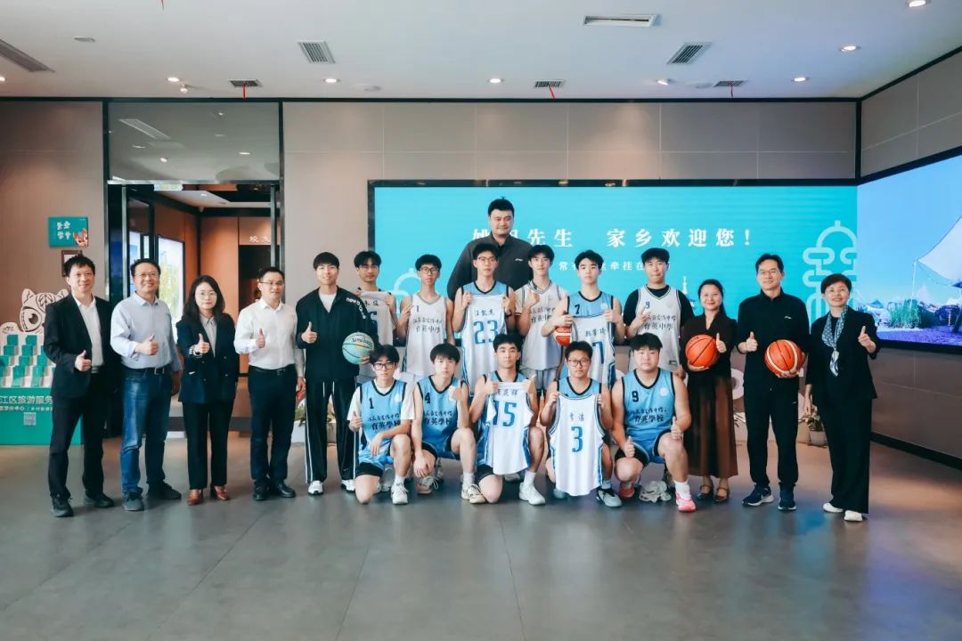 姚明还热情地与震泽中学育英校的学子们合影留念,鼓励大家文化学习和体育锻炼协调发展。