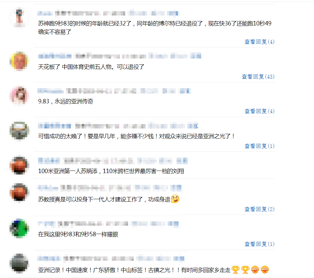 苏炳添还说:“我有点不好意思来比赛了,我已经做到极致了,我的体育生涯也没什么遗憾的了。”