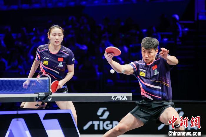 4月12日,中国组合薛飞(右)/钱天一(左)在混双决赛不敌韩国组合林仲勋/金娜英。(WTT组委会供图)