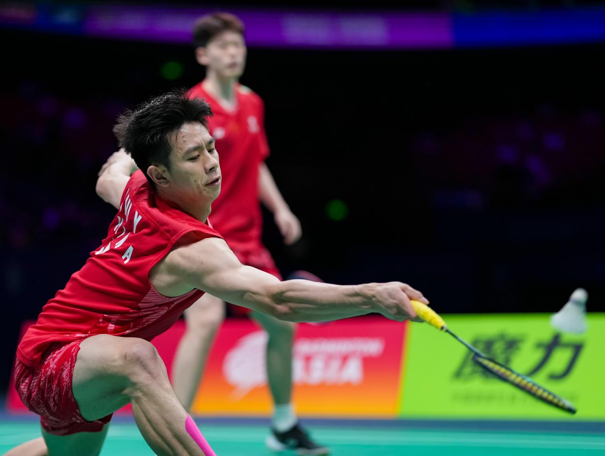 4月12日,陈柏阳/刘毅(前)在比赛中。新华社记者 孙非 摄 双打方面,备受关注的“梁王”“凡尘”组合遭遇失利。男双半决赛中,卫冕冠军梁伟铿/王昶以12:21、14:21不敌马来西亚组合谢定峰/苏伟译,好在陈柏阳/刘毅逆转战胜印度尼西亚的卡尔南多/毛拉纳,为国羽保留一张决赛门票;女双陈清晨/贾一凡以17:21、10:21不敌日本劲敌松山奈未/志田千阳,刘圣书/谭宁则击败队友张殊贤/郑雨,闯入决赛。