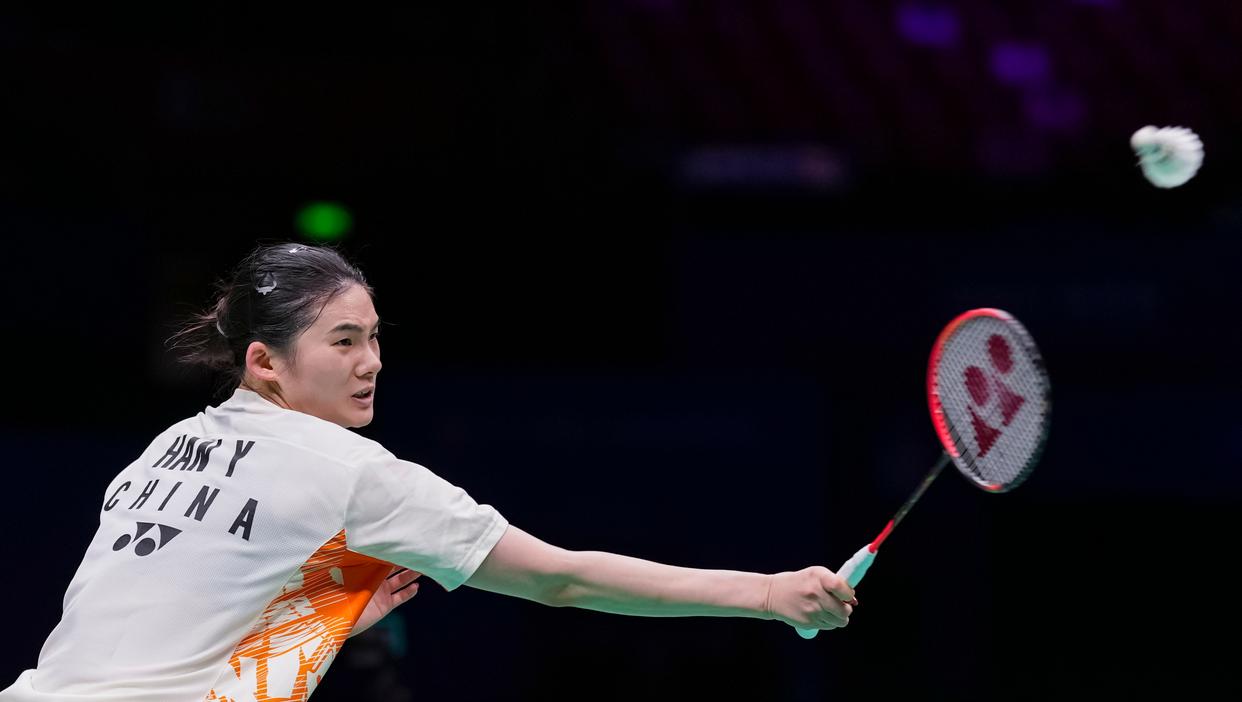 4月12日,韩悦在比赛中回球。新华社记者 孙非 摄 当日比赛中,韩悦以21:14、21:16击败队友高昉洁,率先晋级。东京奥运会冠军陈雨菲随后以两个21:11轻取韩国选手沈有振,与韩悦成功会师。韩悦赛后表示,自己将会向陈雨菲发起“冲击”,“今天做了充分准备,争取决赛能再棒一点”。