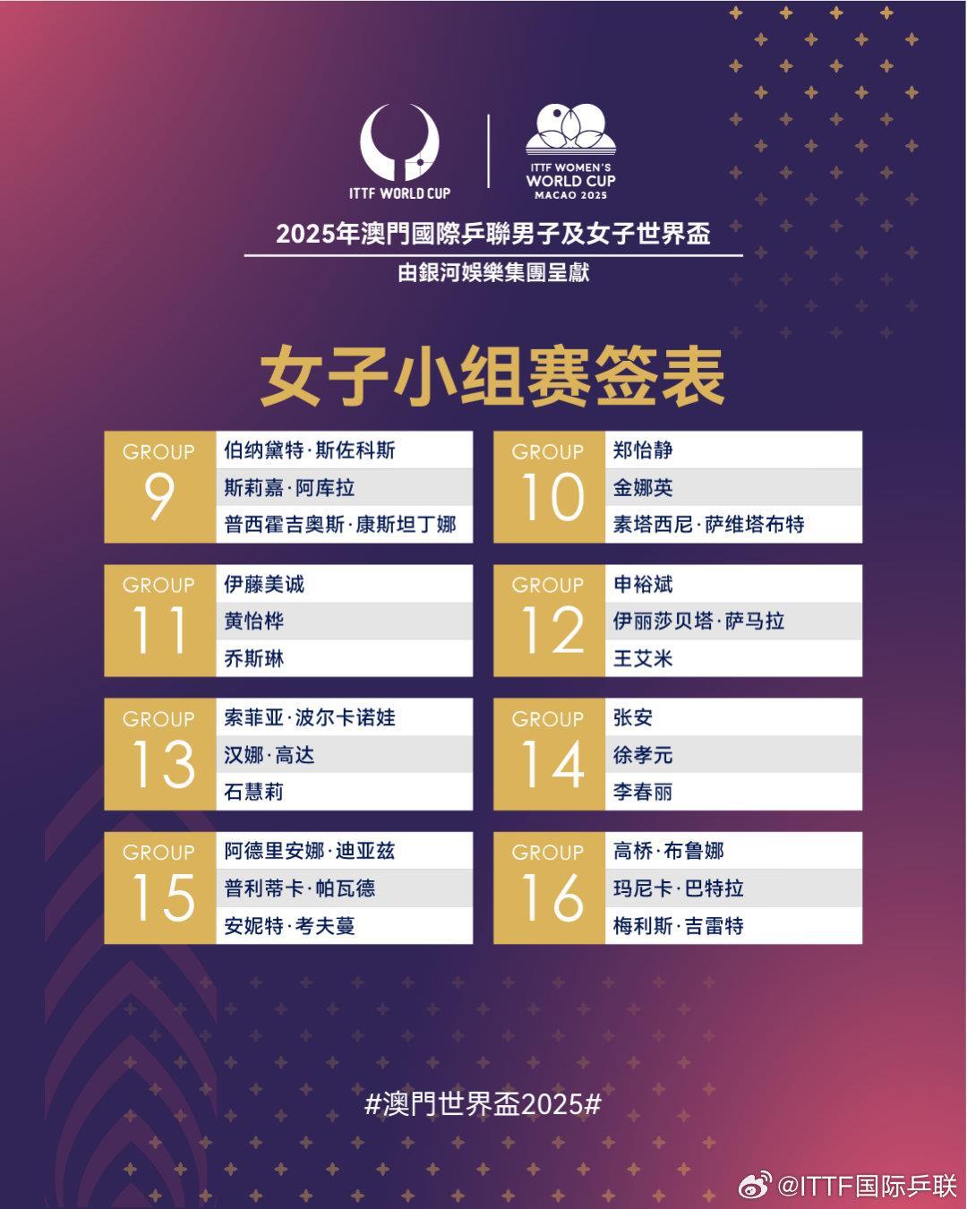 今天,2025年澳门国际乒联男子及女子世界杯抽签结束。